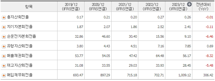 제목과 같이, 회전율은 많은 사람들이 공식만 알고 있고 어떤 것을 의미하는지 잘 모른다. 유형자산회전율, 재고자산회전율 외에 다른 회전율도 담긴 의미가 있으며, 이를 제대로 활용하면 기업 분석에 큰 도움을 받을 수 있다고 생각한다. 오늘 살펴본 사례들 역시 회전율 지표를 100% 활용하진 못했다고 본다. 많은 사례를 통해 회전율의 증감이 절대적인 호황과 불황을 나타내는 것이 아니라 기업의 상황에 따라 해석이 천차만별이라는 점을 알 필요가 있다.