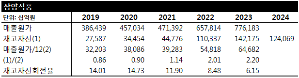 그러나 원텍처럼 삼양식품의 재고 상태를 보면 어떨까?