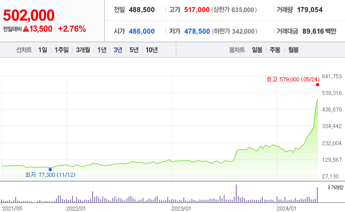 재고자산회전율의 함의에 따라 기업 분석을 어떻게 하면 될지 ‘원텍’과 ‘삼양식품’을 통해 알아보자. 원텍은 미용의료기기를 판매하는 기업이다. 내수에서 시작하여 해외진출을 활발하게 하고 있고 계속해서 신제품도 낸다. 미용 쪽으로 관심이 많아지는 만큼, 미용의료기기 역시 호황을 겪고 있고 이에 주가도 크게 올랐다. 그러나 2024년 1분기 실적이 발표되고보니 매출이 컨센서스를 30% 미스하며 하한가를 쳤다.